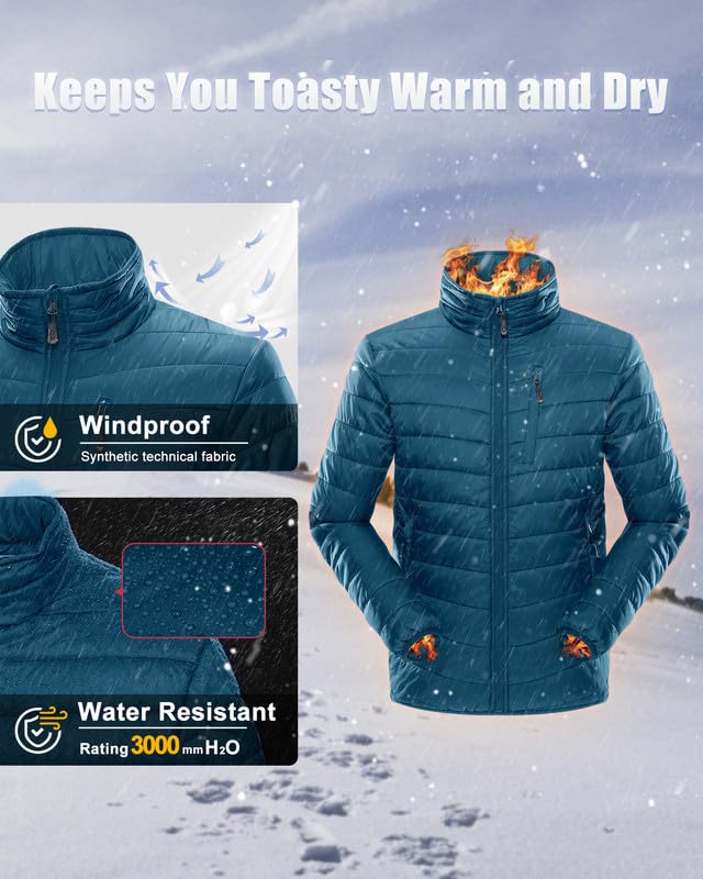33,000ft Gewatteerde herenjas, lichte overgangsjas in donsjas-look, winterjas voor mannen, gevoerd met zakken, opvouwbaar, voor vrije tijd, wandelen, reizen, lichtgewicht bufferjack