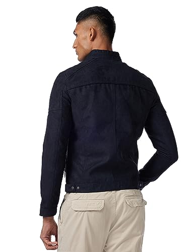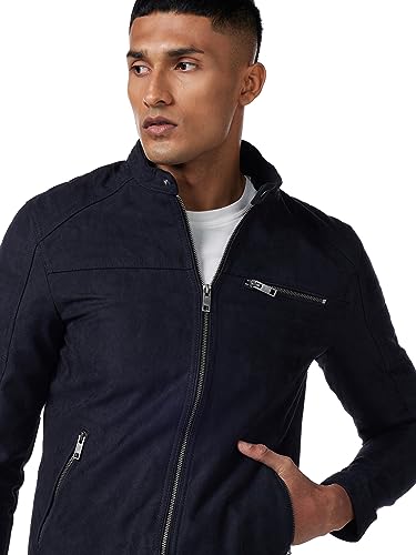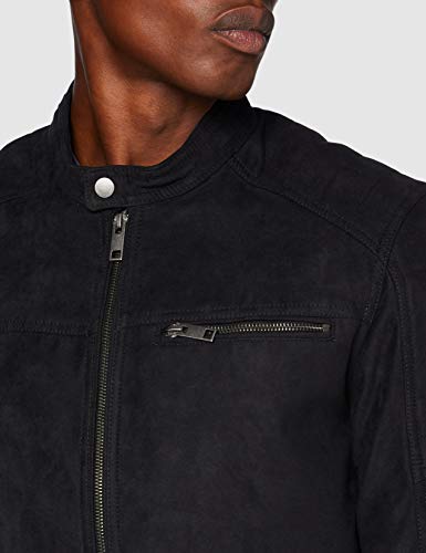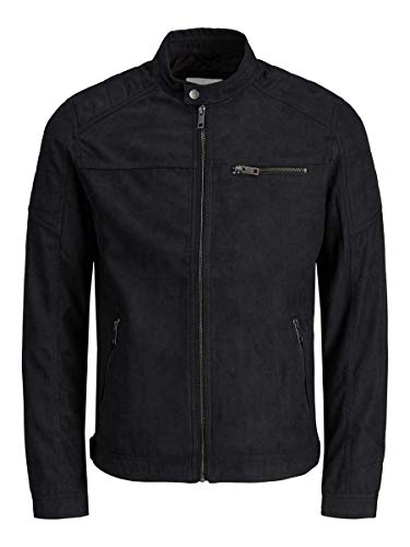 Jas van Jack & Jones voor heren, klassieke bikerdetails, kunstsuède, 3 zakken met ritssluiting aan de voorkant, licht opstaande kraag met knoop, drukknopen aan de zoom, regular fit