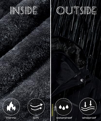 TACVASEN Heren Winter Waterdichte Winddichte Winterjas Warme Fleece Voering Ski Regenjas Met Kap