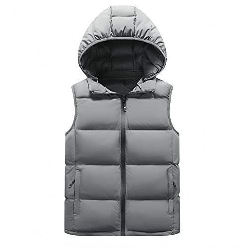 ASDFY Body Warmers For A Man,Men’S Sleeveless Hooded Vest Quilted Vest Jacket Outdoor Vest Grey Sleeveless Quilted Vest Men Jacket Windproof Zippers Bodywarmer For Men Teens