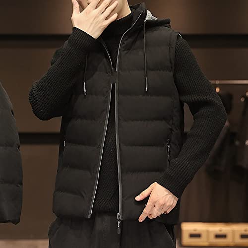 ASDFY Body Warmers For A Man,Men’S Sleeveless Vest With Hood Quilted Vest Jacket Outdoor Vest Black Sleeveless Quilted Vest Men Jacket Windproof Zippers Bodywarmer For Men Teens