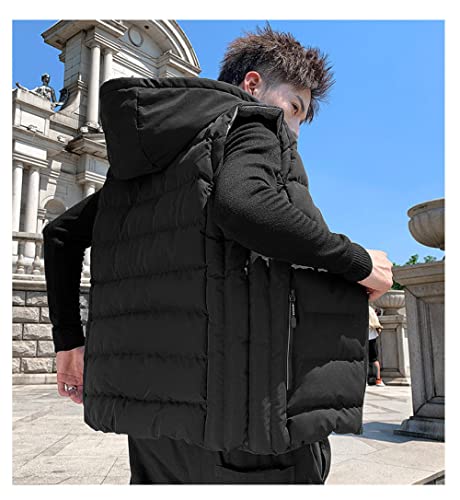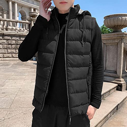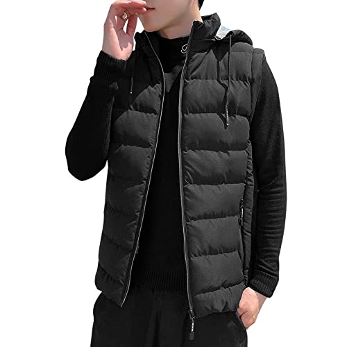 ASDFY Men’S Sleeveless Jacket Gilet,Men’S Sleeveless Hooded Vest Quilted Vest Jacket Outdoor Vest Black Sleeveless Quilted Vest Men Jacket Windproof Zippers Bodywarmer For Men Teens