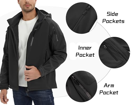 TACVASEN Softshell Herenjack Waterafstotend Militair Jack Warm Outdoorjack met Meerdere Ritszakken