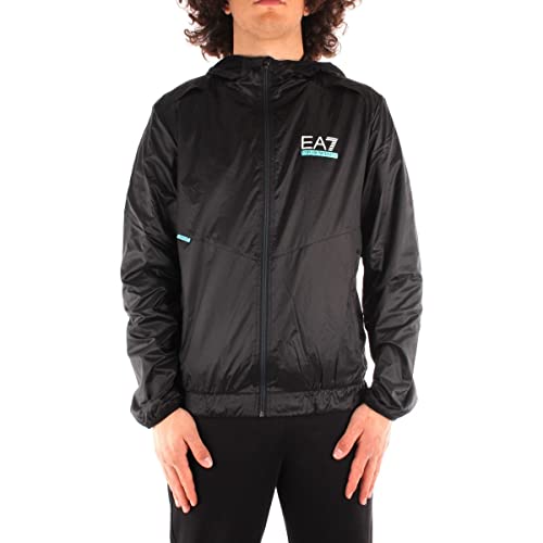 EA7 Emporio Armani Mens lichtgewicht waterdichte jas met capuchon – zwart – 2XL, Zwart