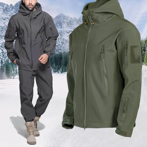 Men’s Windproof Waterproof Jacket Winter Warm Snow Soft Shell ski Jacket Coat Multi-Pockets (S,Green)