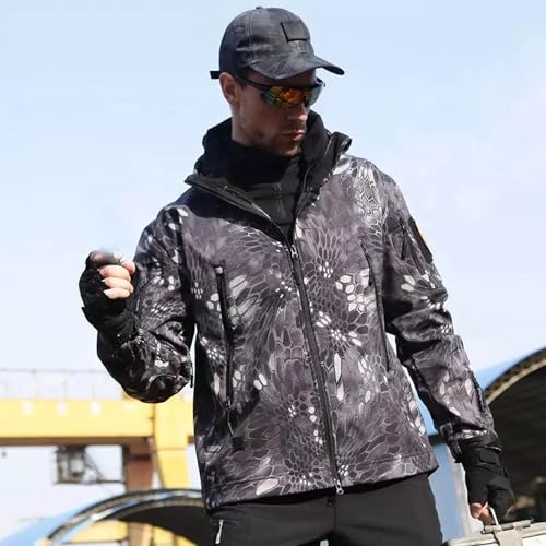 Men’s Windproof Waterproof Jacket Winter Snow Soft Shell Ski Fleece Warm Coat Multi-Pockets