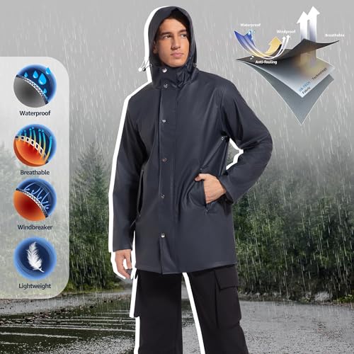 UNIQUEBELLA Regenjas voor heren, regenjassen waterdicht met capuchon ademend windjack outdoor heren lichtgewicht jas